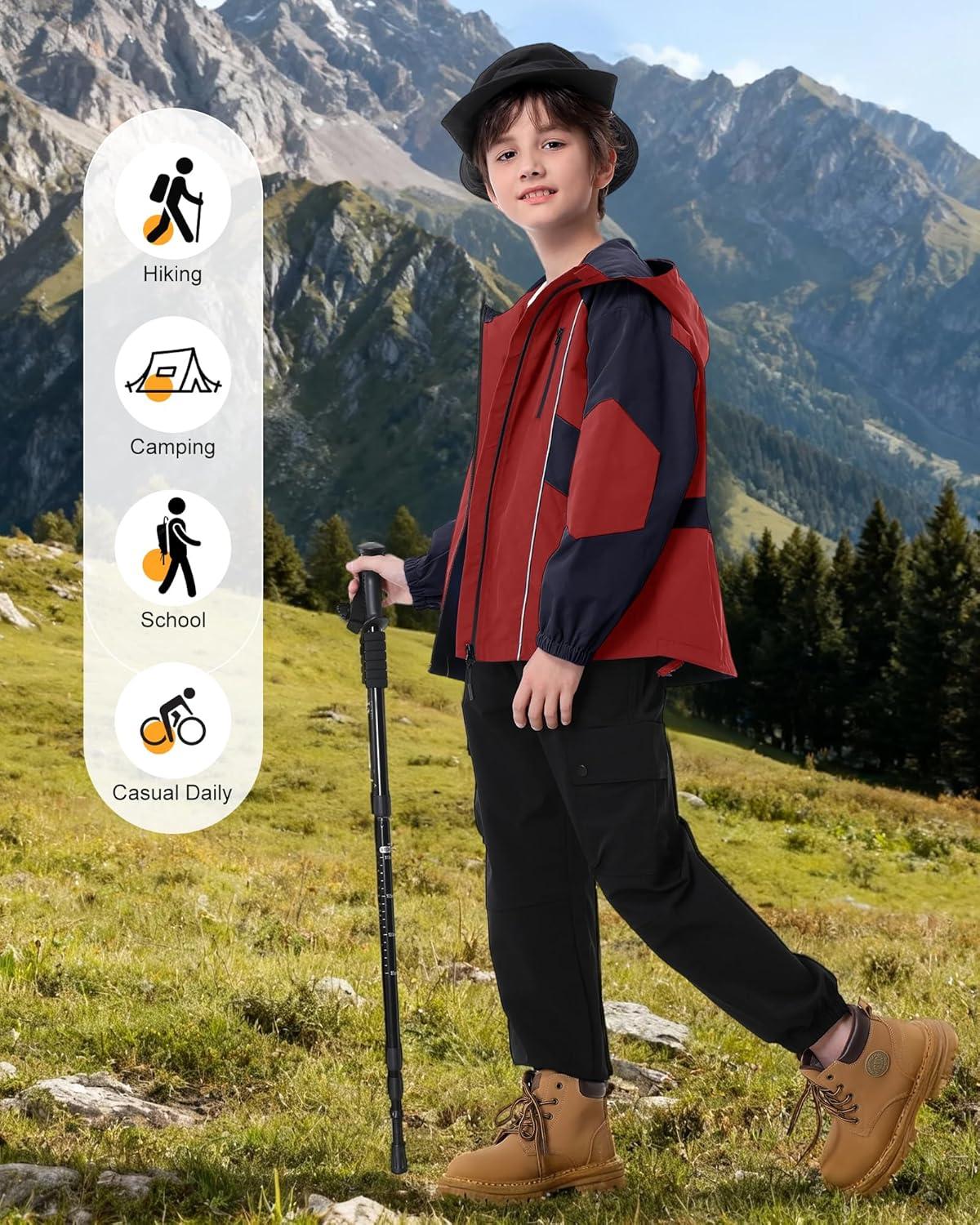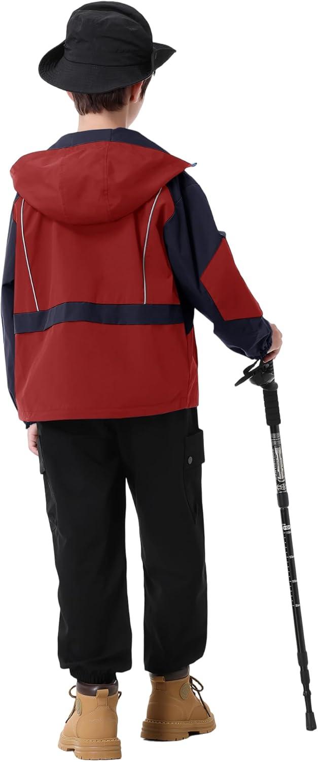 Let him stay protected and stylish in the Rolanko Boys Waterproof Rain Jacket, blending comfort, function, and fashion. Made of 100% polyester, this soft, lightweight, breathable jacket resists dirt, abrasions, and moisture while remaining gentle on the skin. The lined interior ensures all-day comfort, ideal for unpredictable spring and fall weather. Engineered for active kids, this hooded rain coat features a water-repellent shell, windproof construction, and waterproof zipper to guard against light rain and chilly gusts. Reflective strips enhance safety, while elastic cuffs, two side pockets, and a secure chest pocket add convenience. The bold color-block design gives it a sporty, modern edge. Versatile and easy to layer, this rain jacket is perfect for school, outings, hiking, camping, and travel. Designed for kids 5–13, it moves freely with every jump, run, and climb while keeping him dry. Machine washable for hassle-free care, it delivers reliable protection and style season after season.