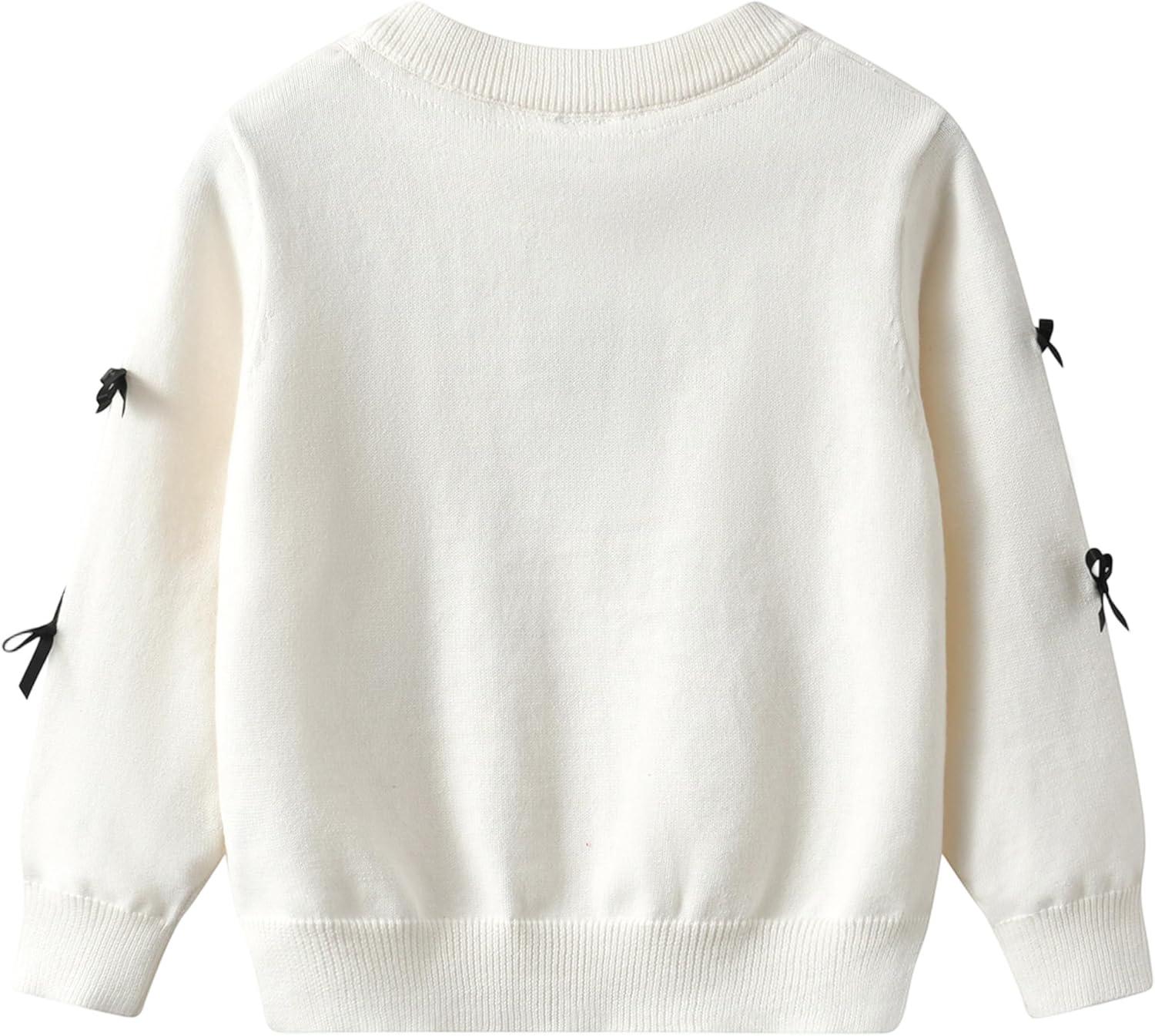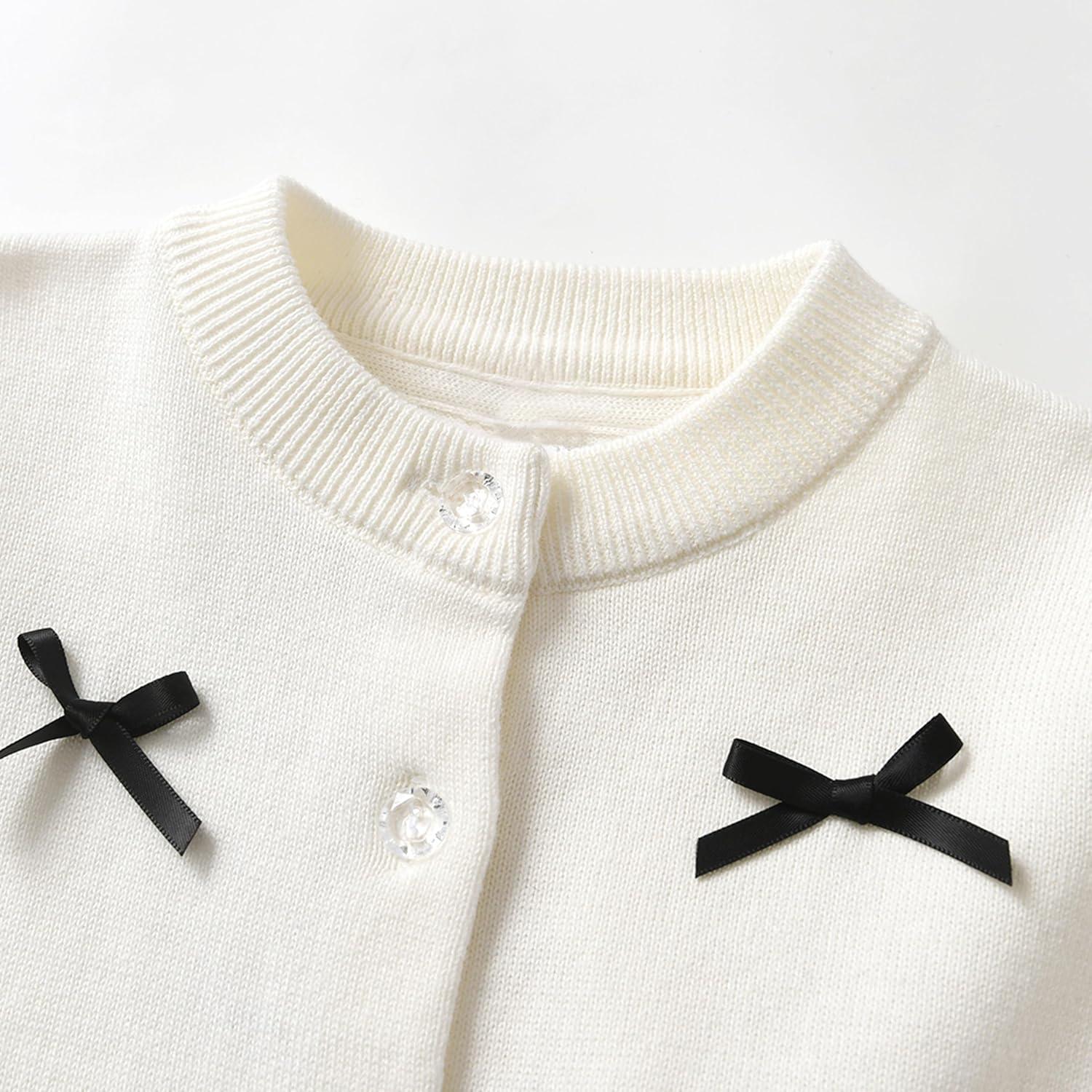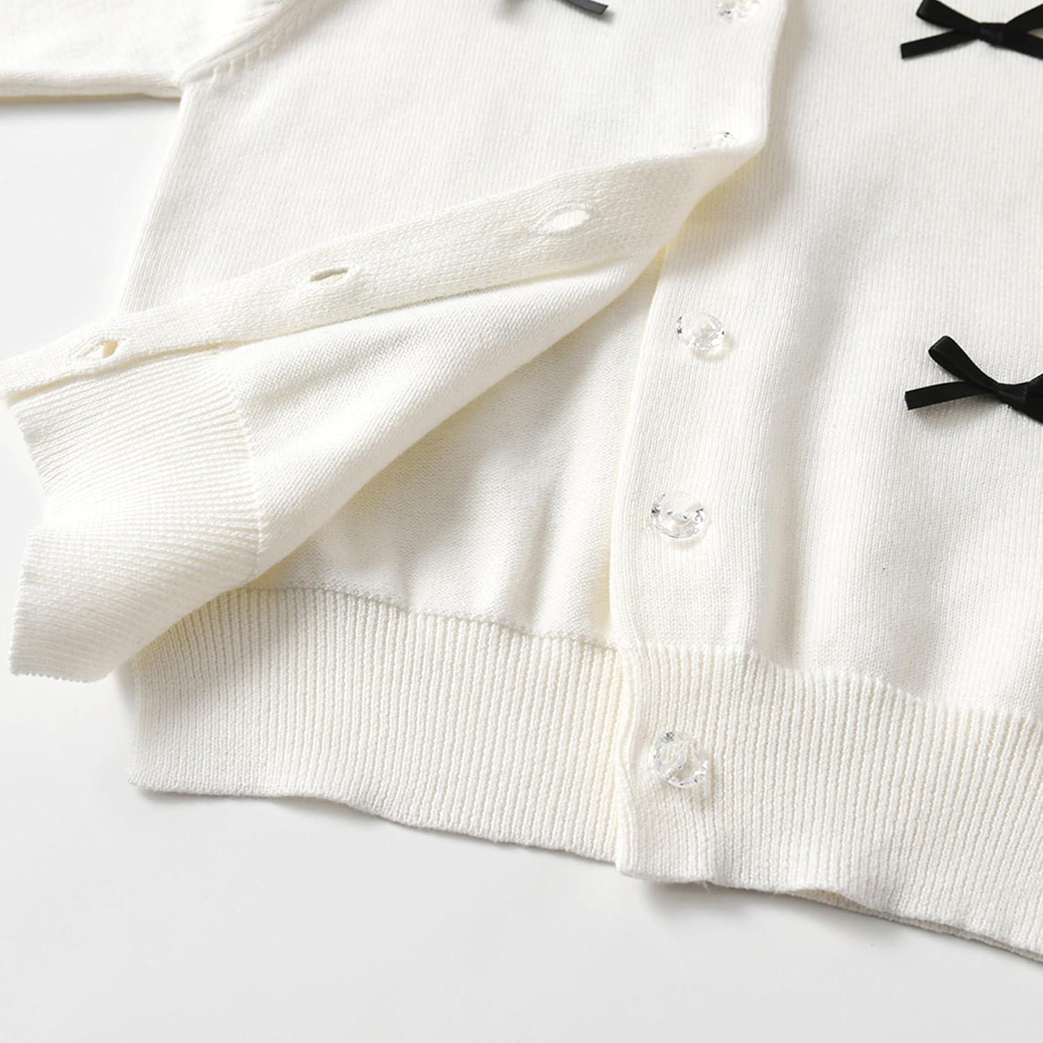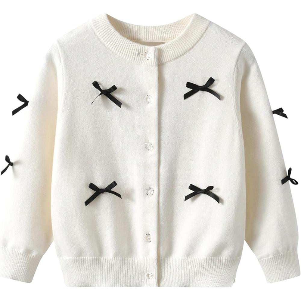 Rolanko Girls Cardigan Sparkling Sequin Kids Knit Button Up Sweater Cardigan Long Sleeve 4-11 Years(Bowwhite)