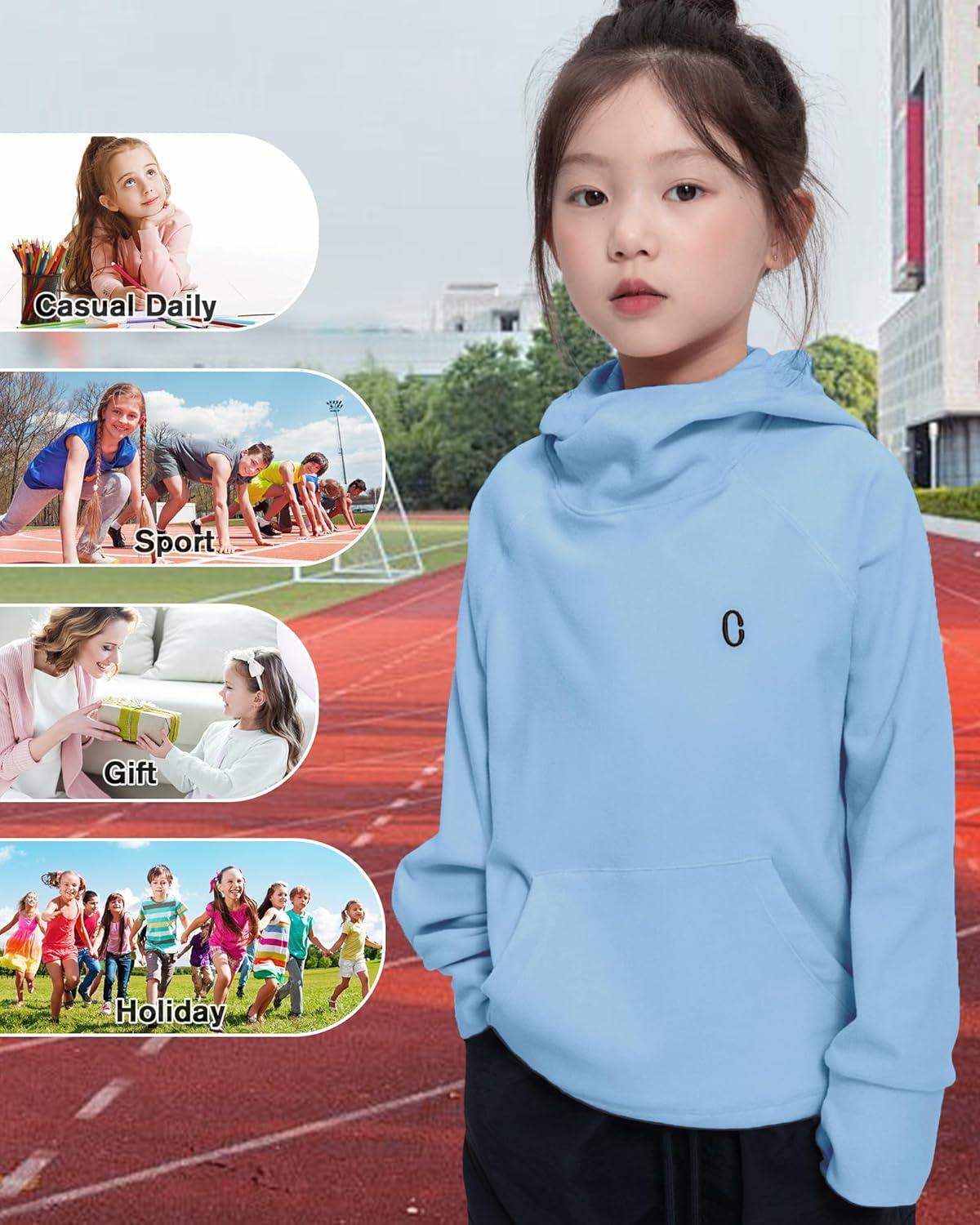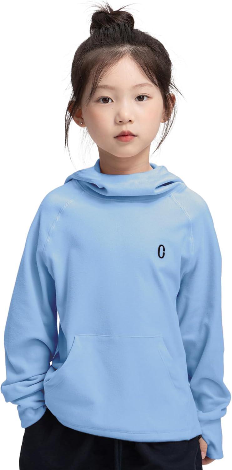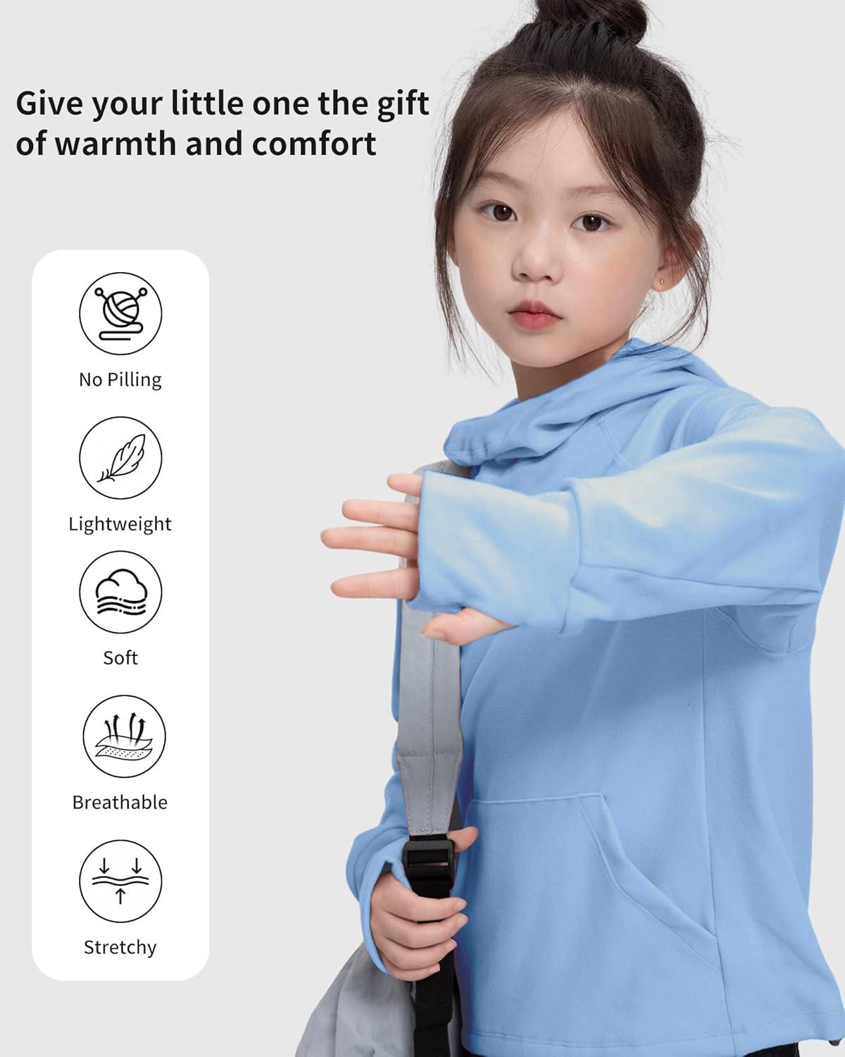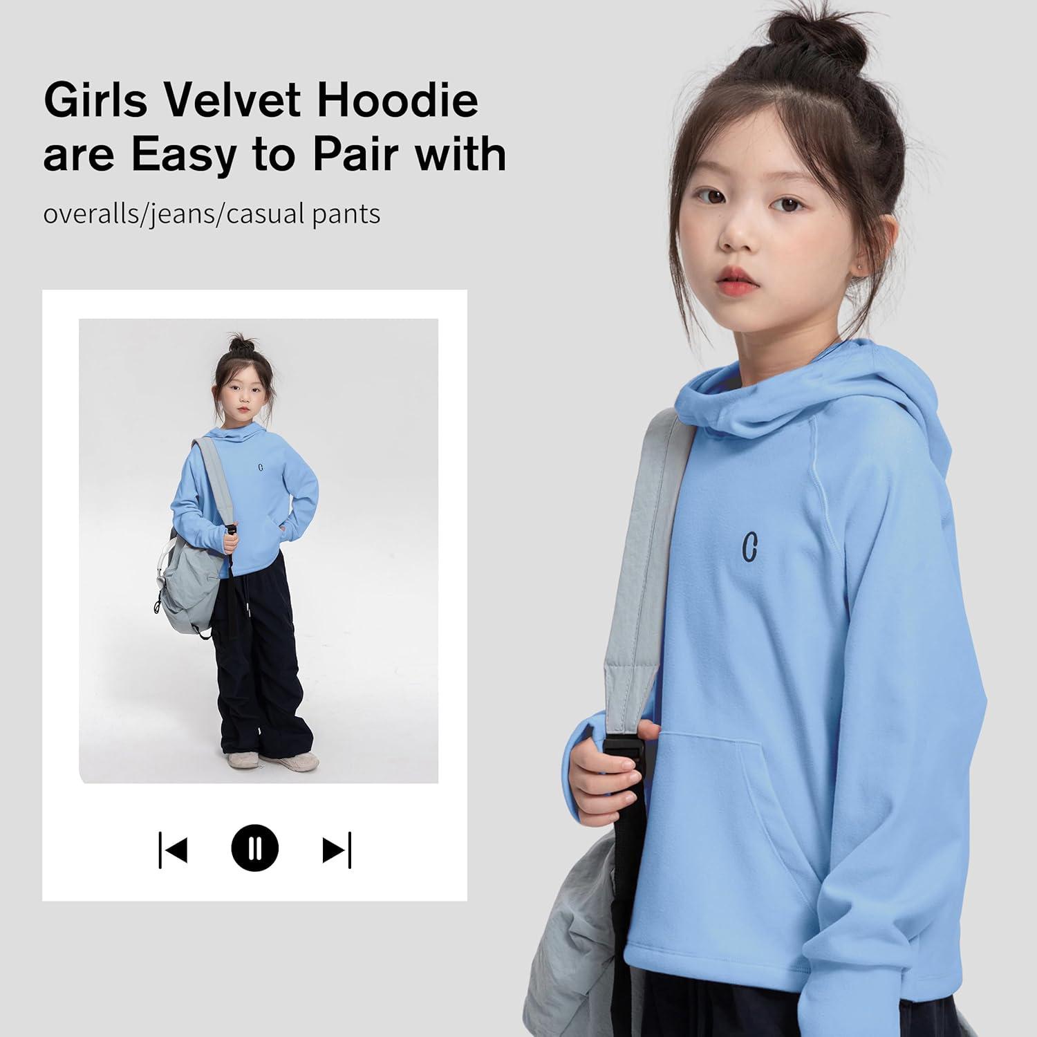 Rolanko Girls Hoodies Fleece Sweatshirts Long Sleeve Cozy lightweight Pullover Tops with Pocket Kids Warm Velvet Outwear(Blue)
