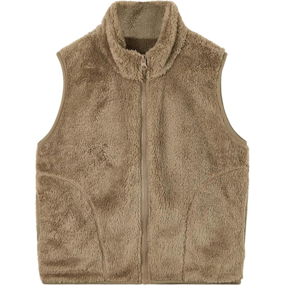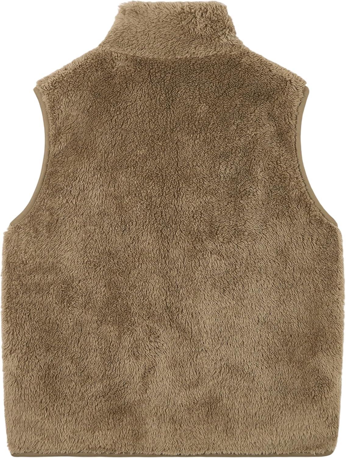 Rolanko Girls Sherpa Fleece Vest, Warm Fuzzy Full Zip Sleeveless Jacket Kids Soft Cozy Outerwear with Pockets(Lightbrown)