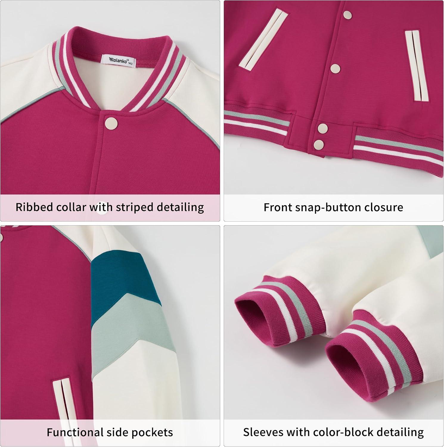 Be the first to review “Rolanko Girls Varsity Jackets Baseball Bomber Color Block Letterman Jacket Outwear With Pockets 7-15 Years(Rose)”