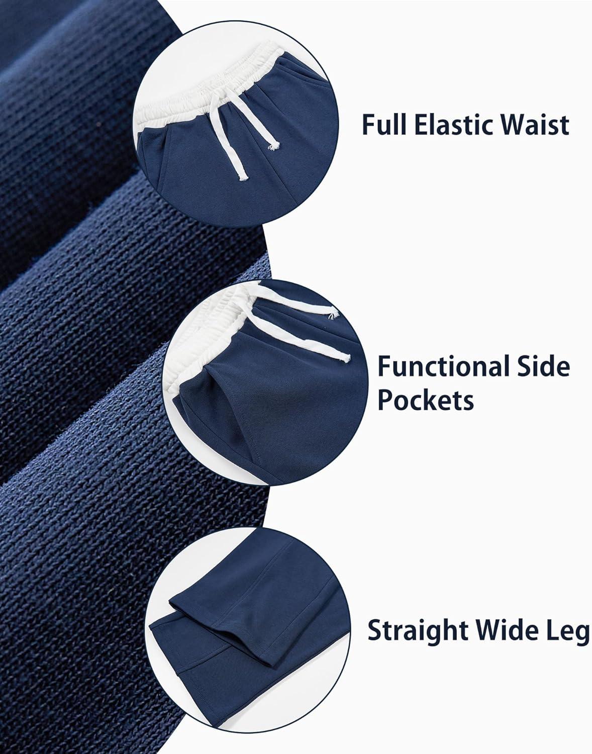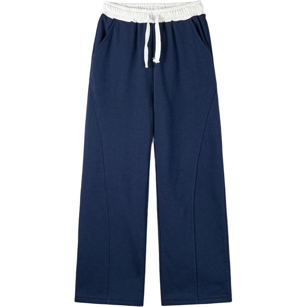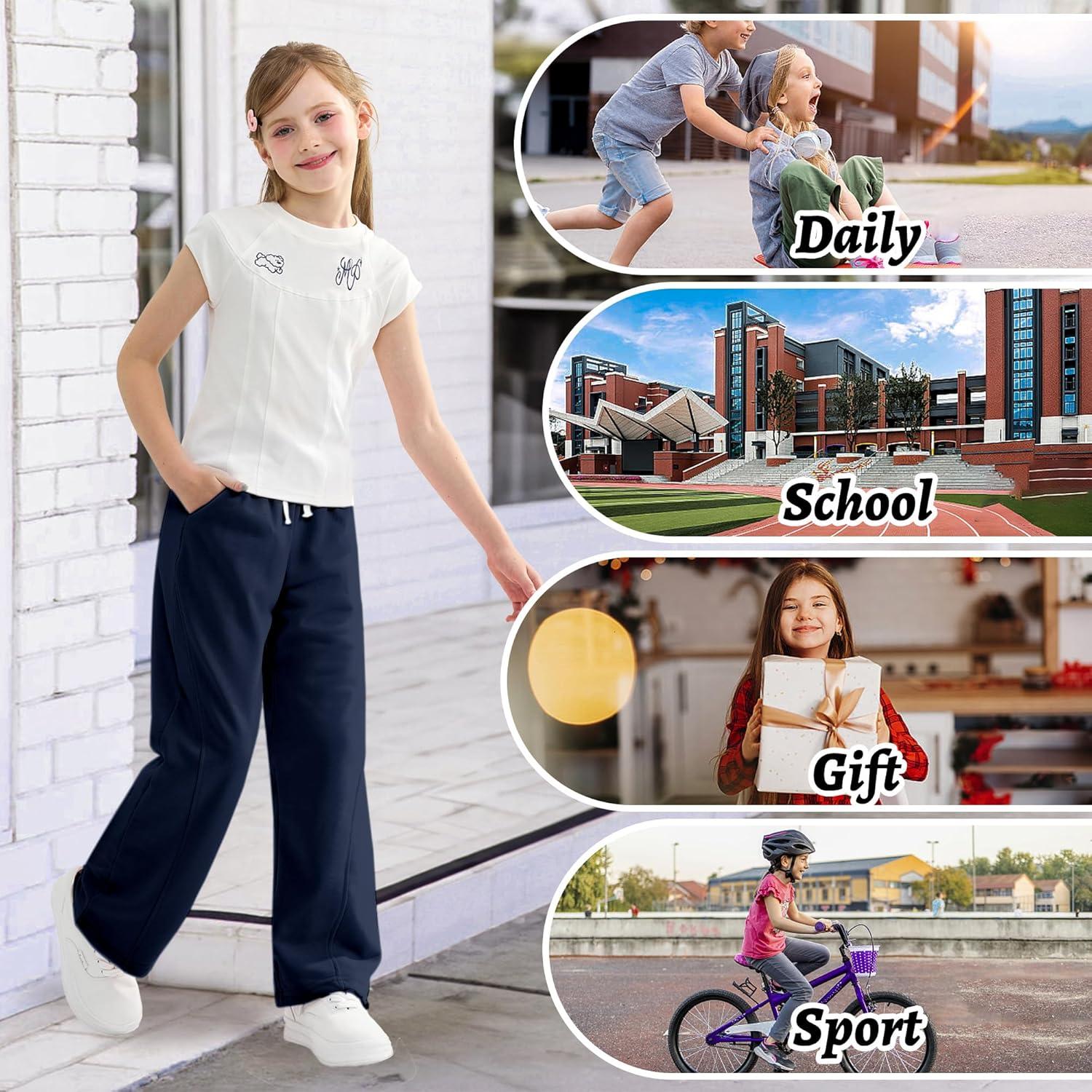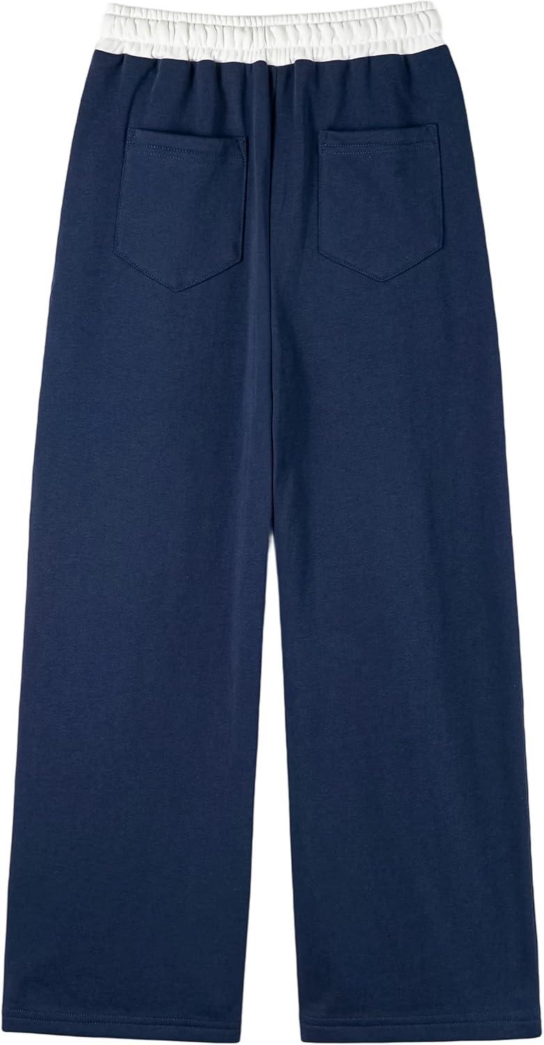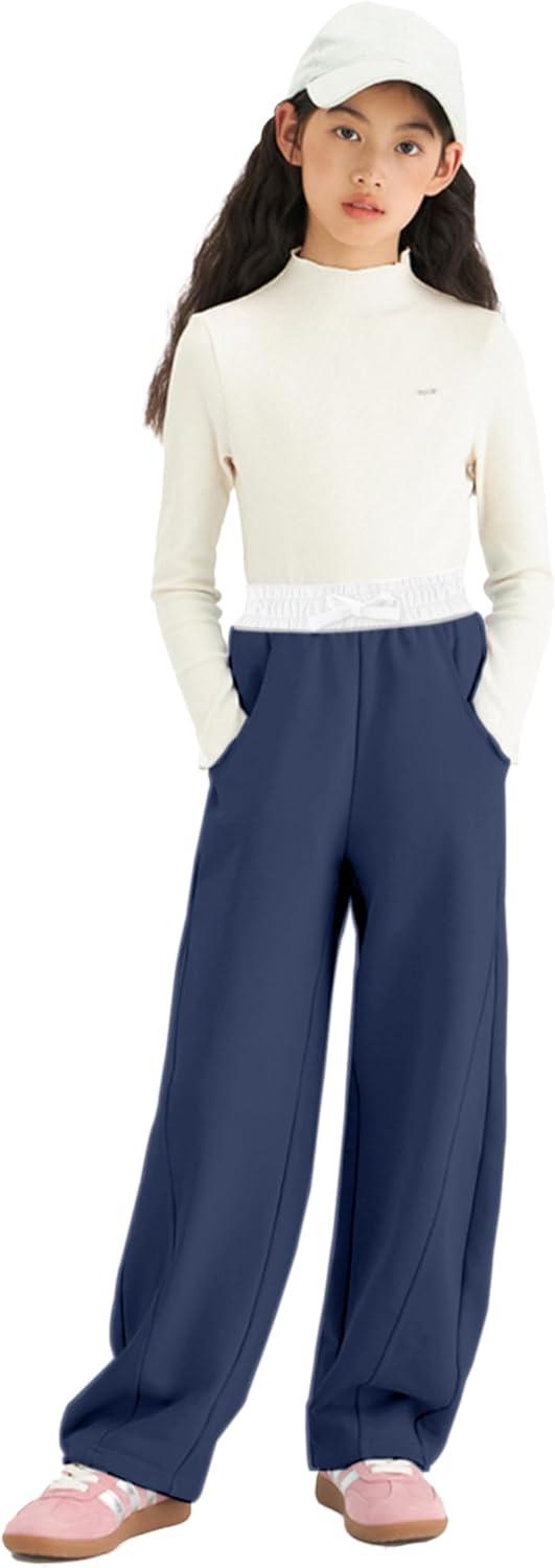 Rolanko Girls Wide Leg Sweatpants Straight Pants for Kids Girls Trousers with Pockets Sweats 4-14 Years(Navywhite)